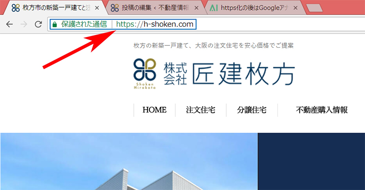 住宅・不動産業界でも大手はhttps(SSL)に取り組んでいますが、多くの中小の住宅会社はまだ未対応です。当社はカード情報を送受信するようなシステムはありませんが、SSL化は世界の趨勢です。暗号化は米国では遥かに進んでいます。いずれ日本もそうなると思います。今回、HPのリニューアルと同時に匠建枚方では暗号化に取り組みましたのでご報告いたします。